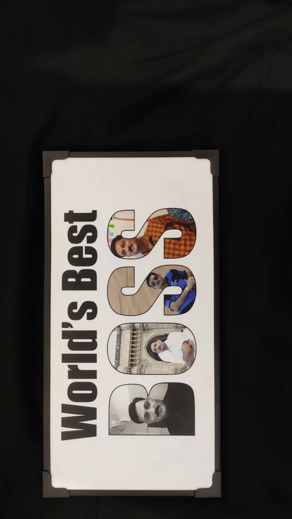 Personalized custom photo collage, your photographs are combined together to form the word World’s Best BOSS. Commemorate a special occasion with a collage of pictures of a BOSS, made in the shape of BOSS.